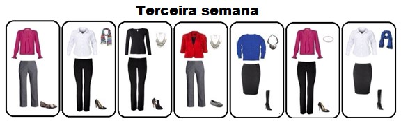 Saber como usar vários looks com poucas peças de roupa não é algo muito difícil. Como pudemos ver no tópico anterior, com apenas 14 peças (incluindo sapatos) montamos looks para 7 dias durante 4 semanas, desta forma a combinação total foi de 28 looks. Logo, resultamos em diversas combinações das mais variadas formas. O mais interessante dessa proposta é que não repetimos qualquer look. Logo, com algumas peças foi possível criar diversas variações de looks.